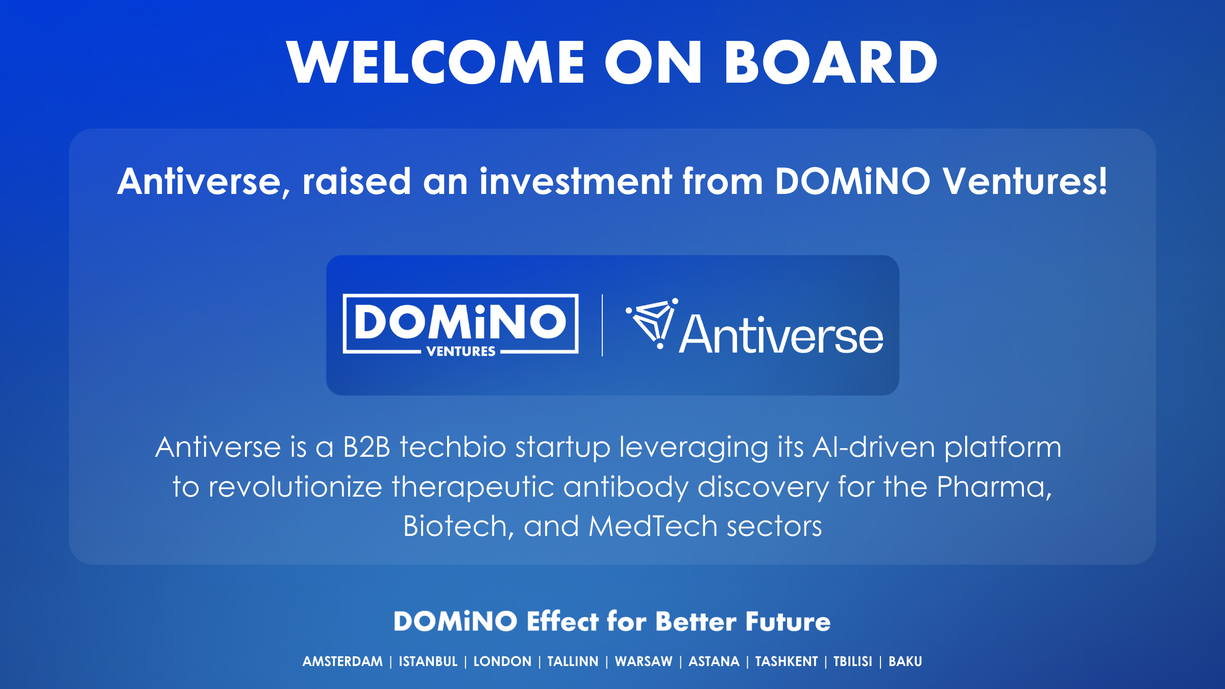 This investment will accelerate Antiverse’s 𝗶𝗻𝘁𝗲𝗿𝗻𝗮𝗹 𝘁𝗵𝗲𝗿𝗮𝗽𝗲𝘂𝘁𝗶𝗰 𝗽𝗶𝗽𝗲𝗹𝗶𝗻𝗲 and expand its 𝘀𝘁𝗿𝗮𝘁𝗲𝗴𝗶𝗰 𝗰𝗼𝗹𝗹𝗮𝗯𝗼𝗿𝗮𝘁𝗶𝗼𝗻𝘀 across pharma and biotech. 🌍